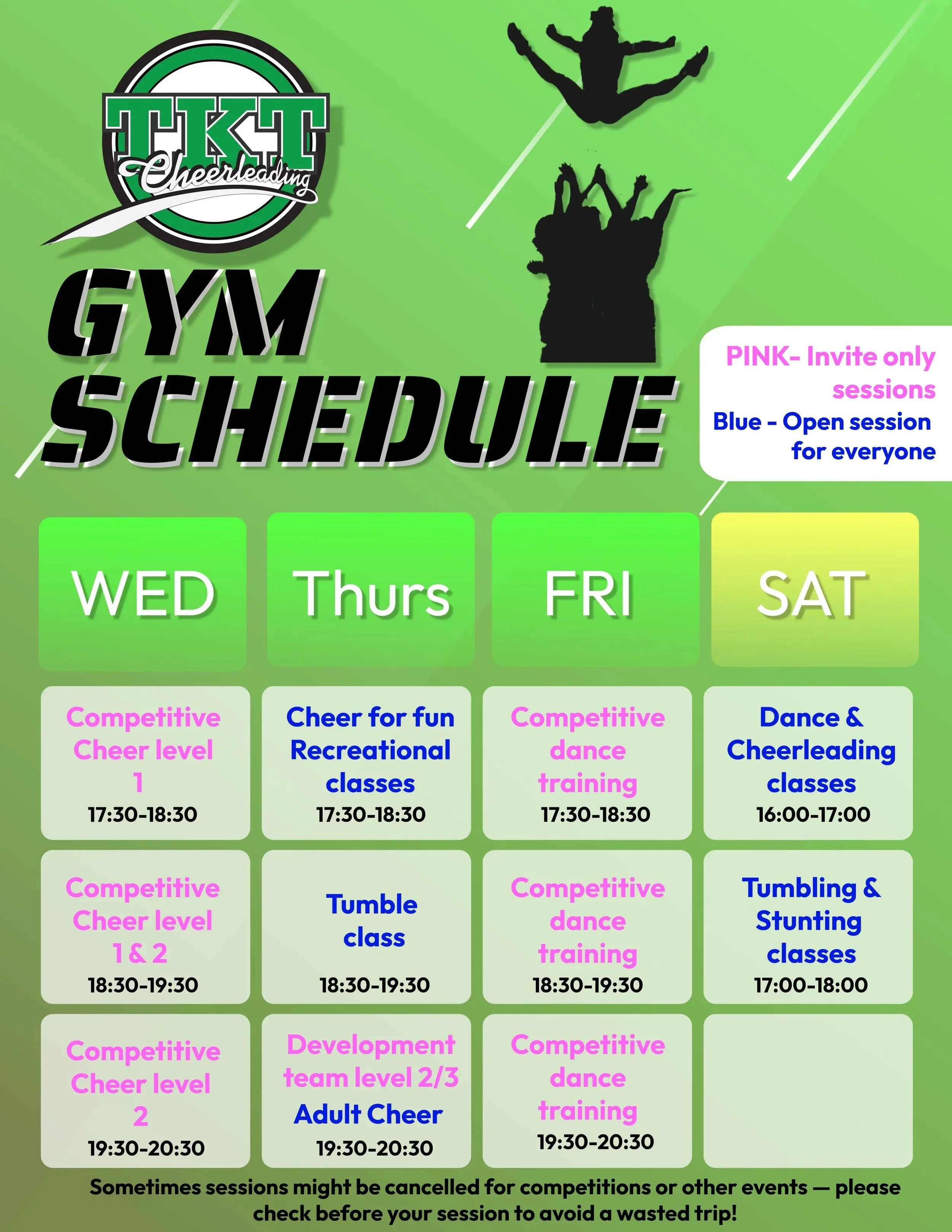 Spotted a competitive cheerleading or dance session in pink that excites you? Get in touch today, and we’ll help you take the first step to joining our talented team! And if you see any sessions in blue, they’re open to everyone in Leamington Spa and surrounding areas — no matter your age or skill level. So why wait? Come join the fun, learn new moves, and be part of our amazing community